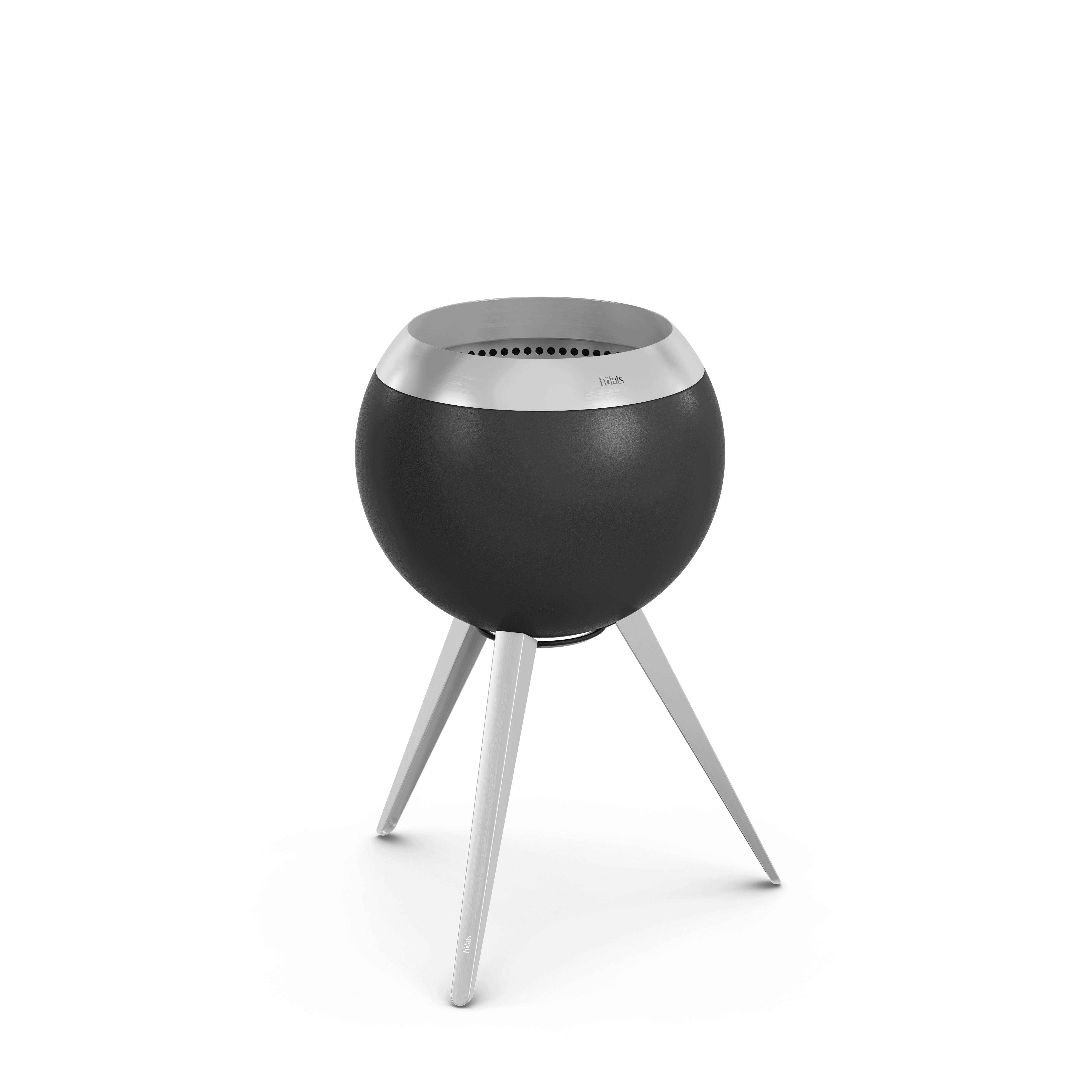 Und für den Fall, dass sich die Gartenparty zu späterer Stunde in einen Lounge-Abend verwandelt, lässt sich die schwarze Kugel mühelos auf einen bodennahen Gussfuß absenken. In jeder Hinsicht ein Meisterstück in der Welt der Feuerstellen.