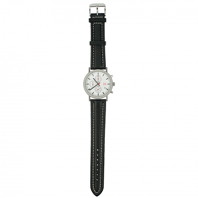 Die Uhrenkollektion der Deutschen Bahn besticht durch ihr puristisches Design. Die typischen Details wie rote Farbakzente und klare Linien fallen dennoch sofort ins Auge. Mit diesem zeitlosen Chronographen sind Sie immer auf der Höhe der Zeit. Das Miyota Markenquarzwerk mit Stoppfunktion im hochwertigen Edelstahlgehäuse ist bis 5 ATM wasserdicht. Für ein angenehmes Tragegefühl sorgt ein hochwertiges, gefüttertes Lederarmband. Auf das Uhrwerk erhalten Sie zwei Jahre Garantie.