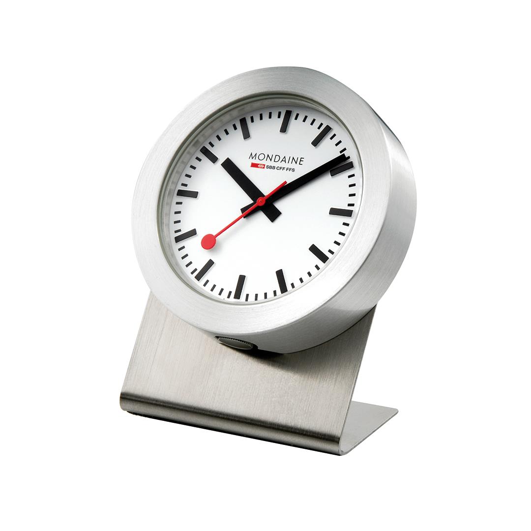 Der Klassiker am Kühlschrank: Das klassische Design der Mondaine Official Swiss Railways Clock in einer Magnet-Version für den Kühl- oder Aktenschrank. Diese Uhr besticht durch das puristische und schlichte Design und schmückt mit ihrer Größe von nur 50mm Durchmesser und ihrem unverwechselbaren Zifferblatt mit der markanten roten Sekundenkelle jeden Raum. Dank des mitgelieferten Ständers lässt sie sich sowohl als Tischuhr, wie auch als Wanduhr verwenden.