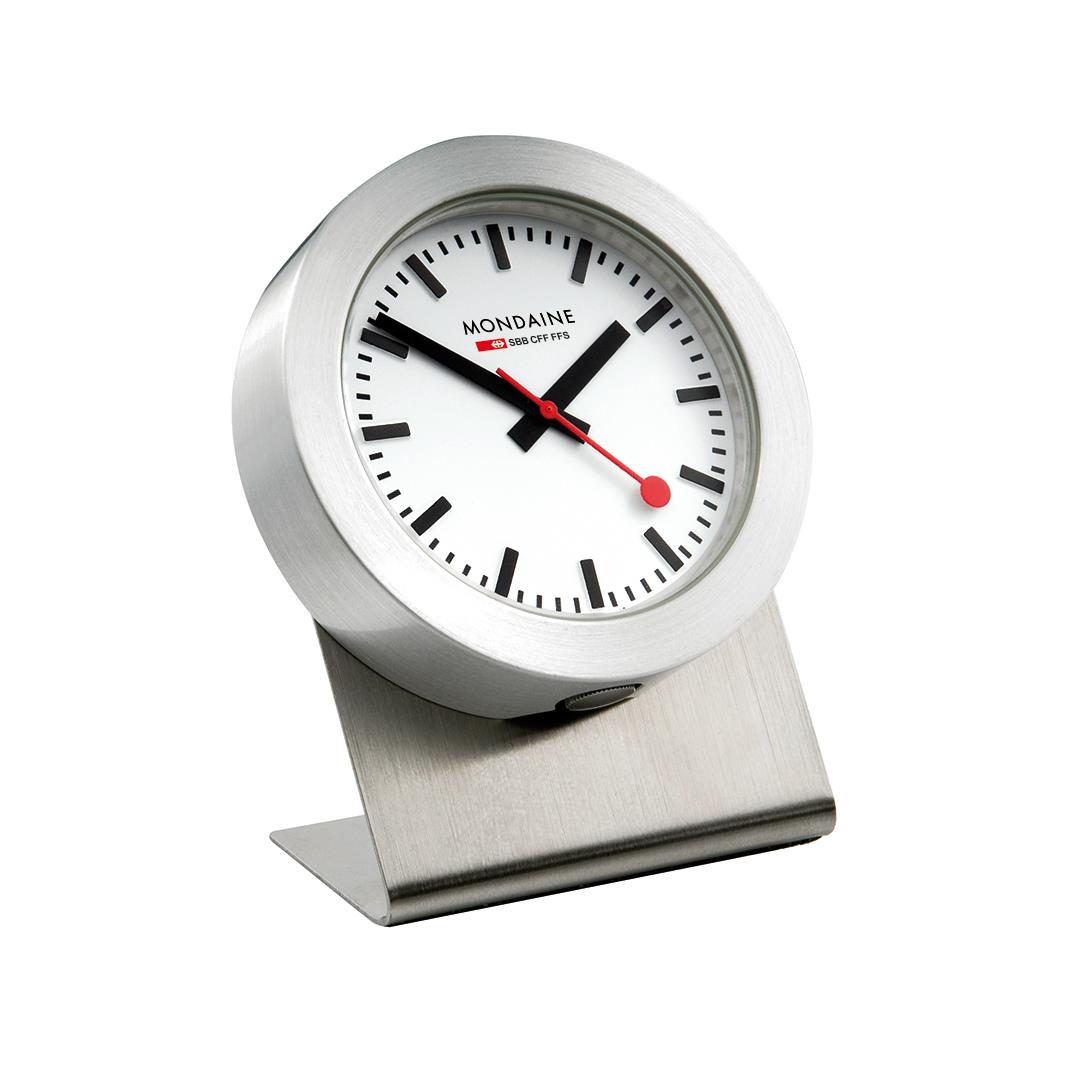 Der Klassiker am Kühlschrank: Das klassische Design der Mondaine Official Swiss Railways Clock in einer Magnet-Version für den Kühl- oder Aktenschrank. Diese Uhr besticht durch das puristische und schlichte Design und schmückt mit ihrer Größe von nur 50mm Durchmesser und ihrem unverwechselbaren Zifferblatt mit der markanten roten Sekundenkelle jeden Raum. Dank des mitgelieferten Ständers lässt sie sich sowohl als Tischuhr, wie auch als Wanduhr verwenden.