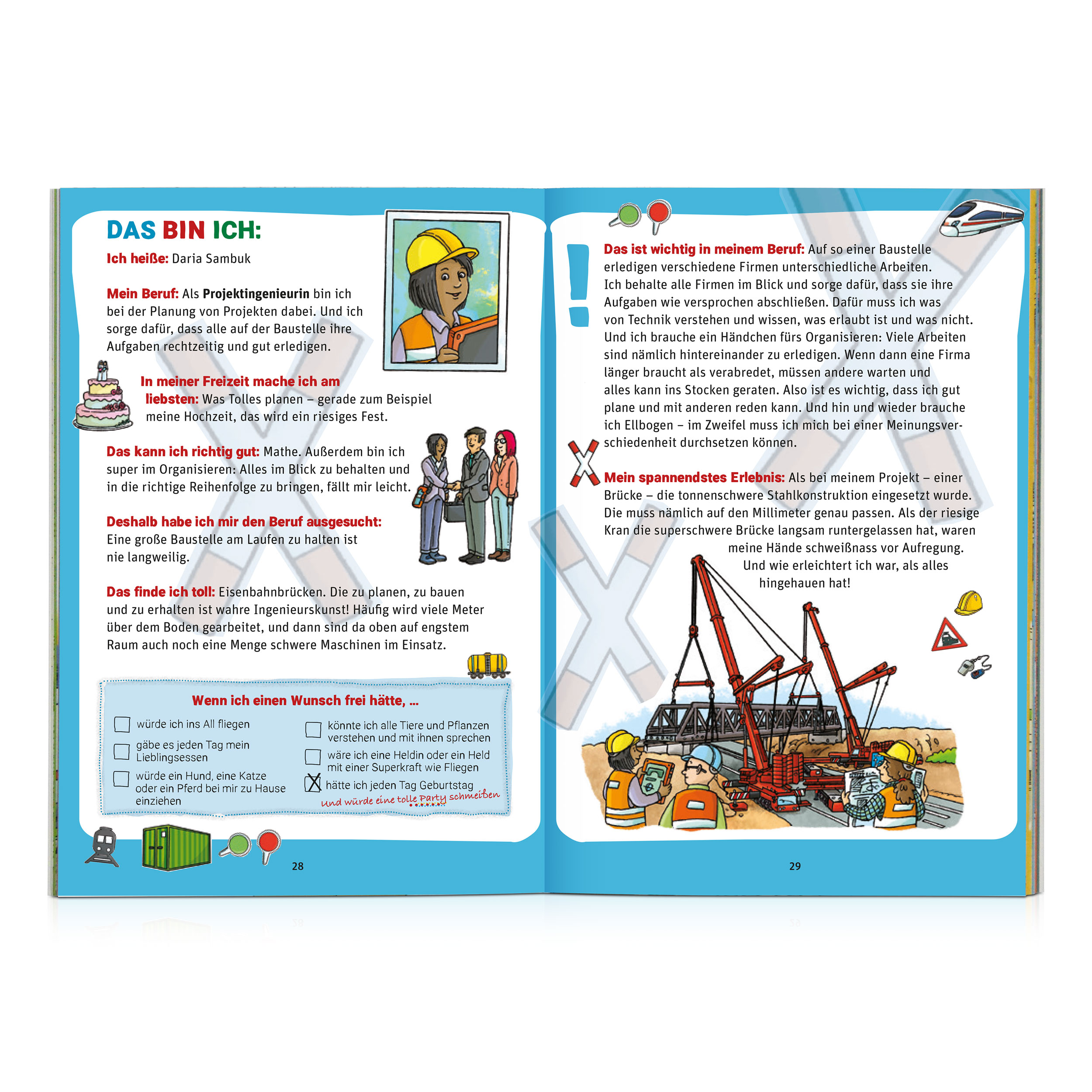 In diesem Buch werden viele dieser Arbeitsplätze vorgestellt und über einige Mitarbeitende und ihre Berufe kann durch die Einträge im Freundschaftsbuch noch mehr erfahren werden. Außerdem geht es um die Vielfalt unserer Mitarbeitenden sowie Wissenswertes zu den Themen Umwelt, Digitalisierung und moderne Arbeitswelten. Bei dem Buch wurde viel Wert auf inklusive Bild und Textsprache gelegt - gerade, weil Bücher die Chance bieten, Klischees aufzubrechen und das Weltbild zu prägen.
