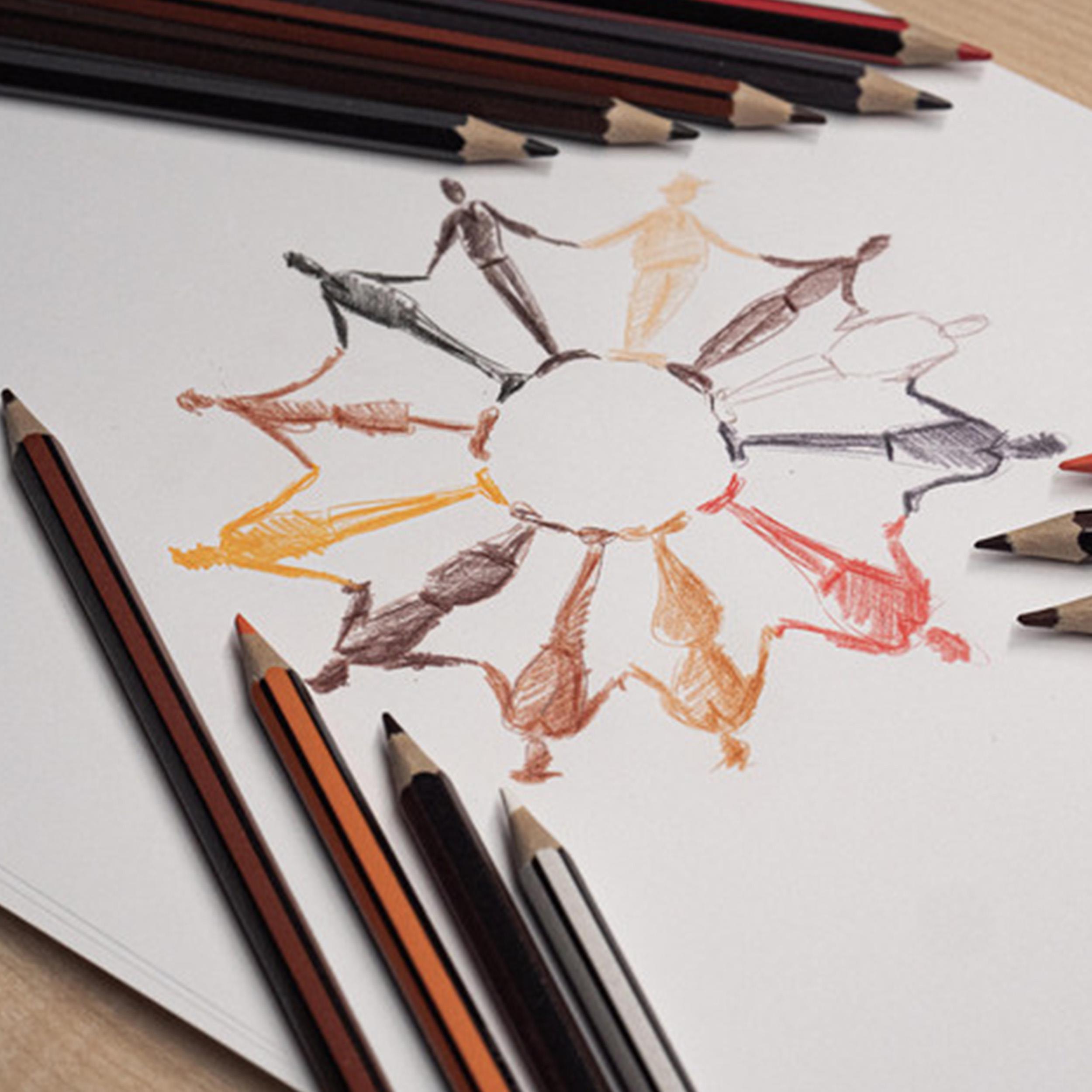 Diese Buntstifte machen der Farbe, die meistens als einziger hautfarbener Stift angeboten wird, Konkurrenz. Das Set entspricht den häufigsten Hautfarben, Kinder können so auswählen, wie sie sich und ihre Freunde malen wollen Werden die Farben übereinander gezeichnet, können weitere Differenzierungen erreicht werden.