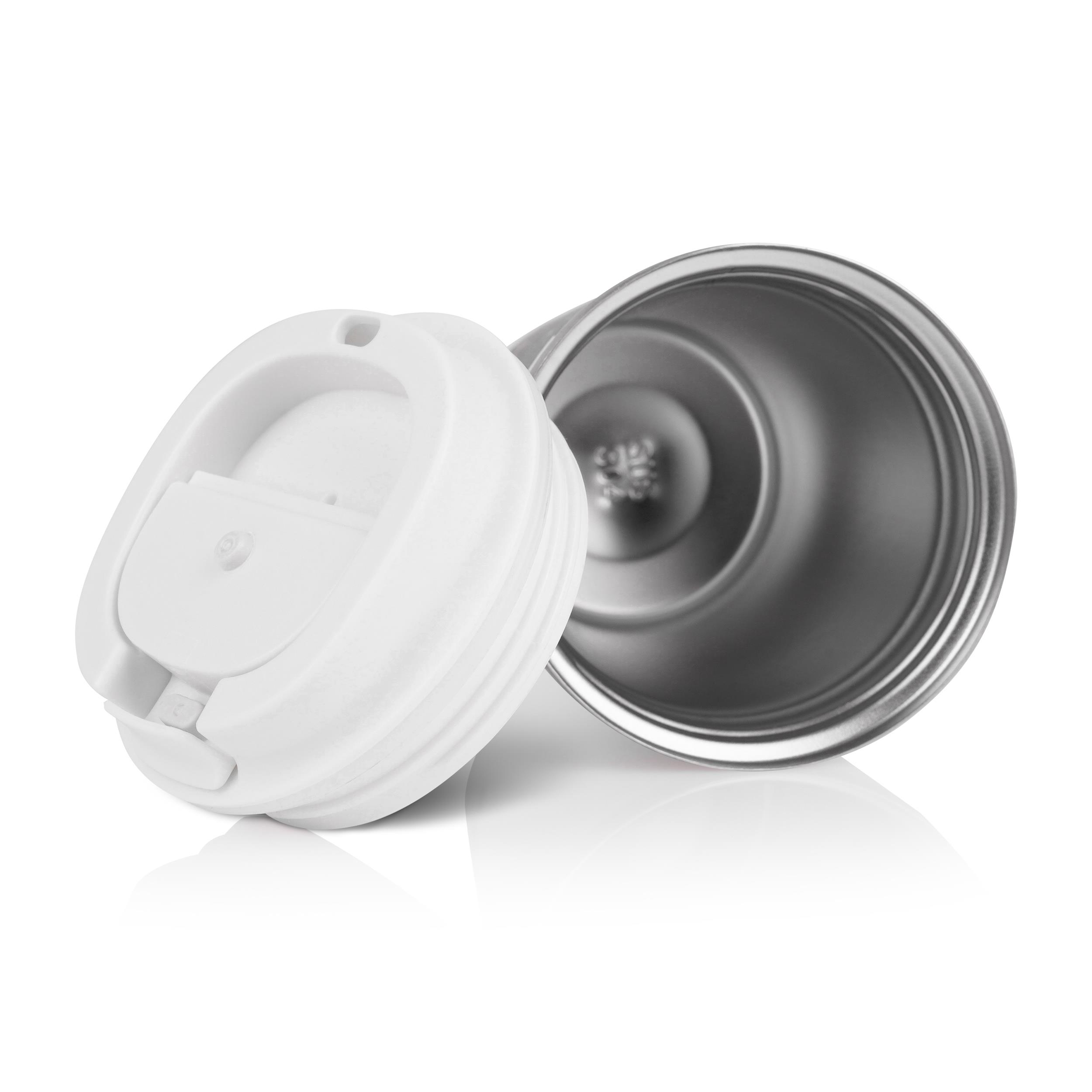 Doppelwandiger Becher aus Edelstahl mit PP-Deckel. Ideal für Ihren Kaffee am Morgen, Tee oder... mehr