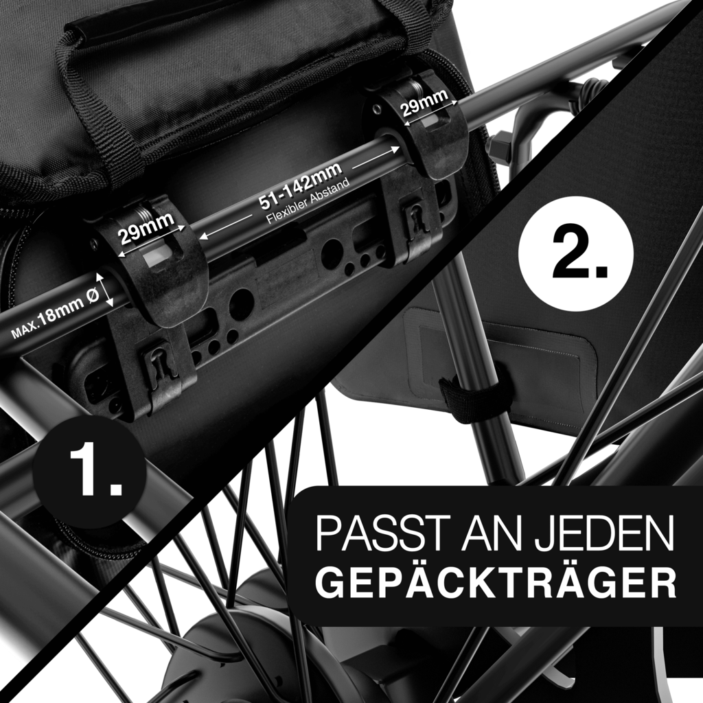 Maximal Durchmesser der Gepäckträgerstange: 18 mm