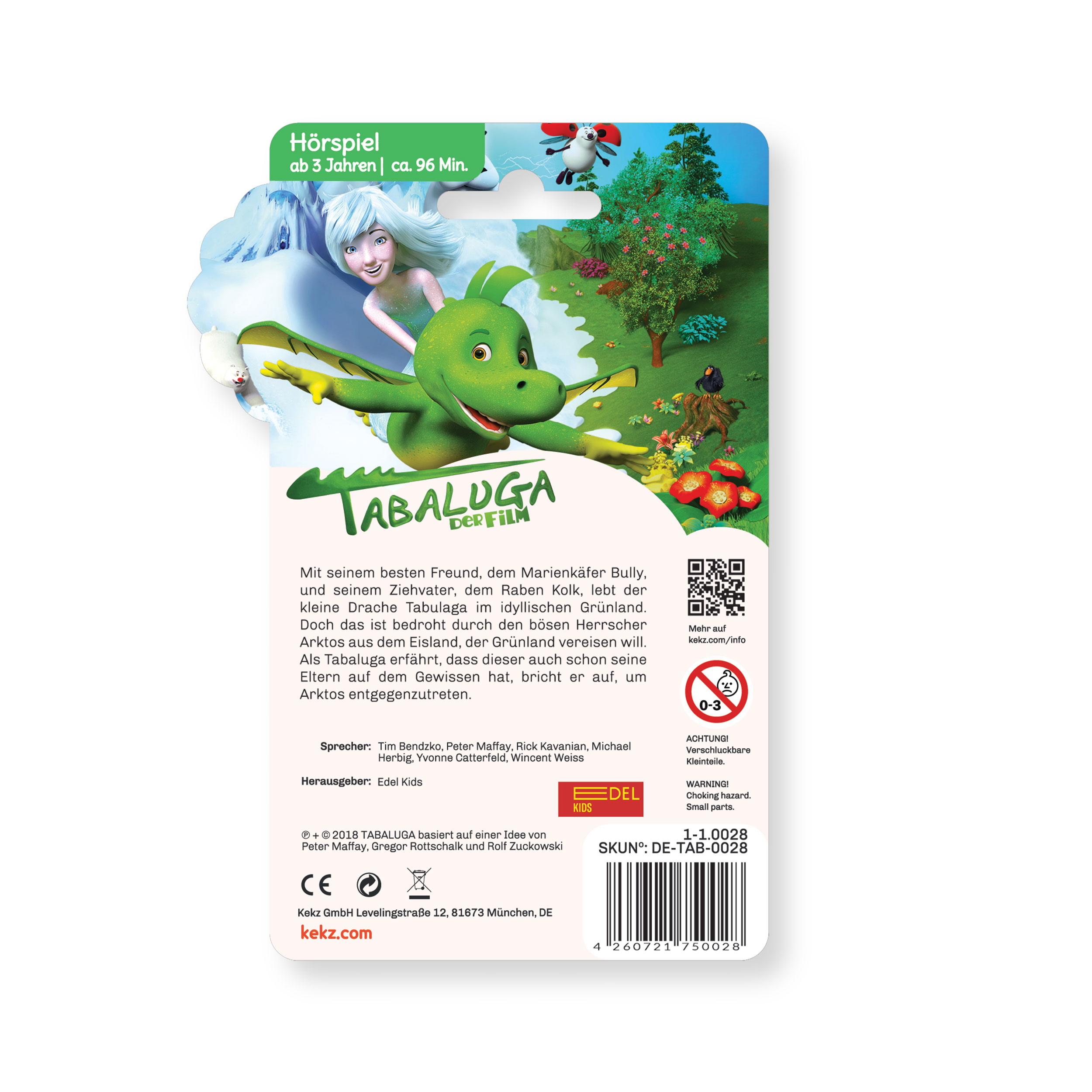 Für den Kekz-Kopfhörer gibt es mit diesem Kekz Audiochip neuen Hörspielspaß für zuhause und unterwegs! Die magnetischen Audiochips können einfach in den Kekzhörer geklickt werden und los geht's. Mit dem Chip „Tabaluga Kinofilm“ kommt Unterhaltung für kleine Drachen-Geschichten-Fans.