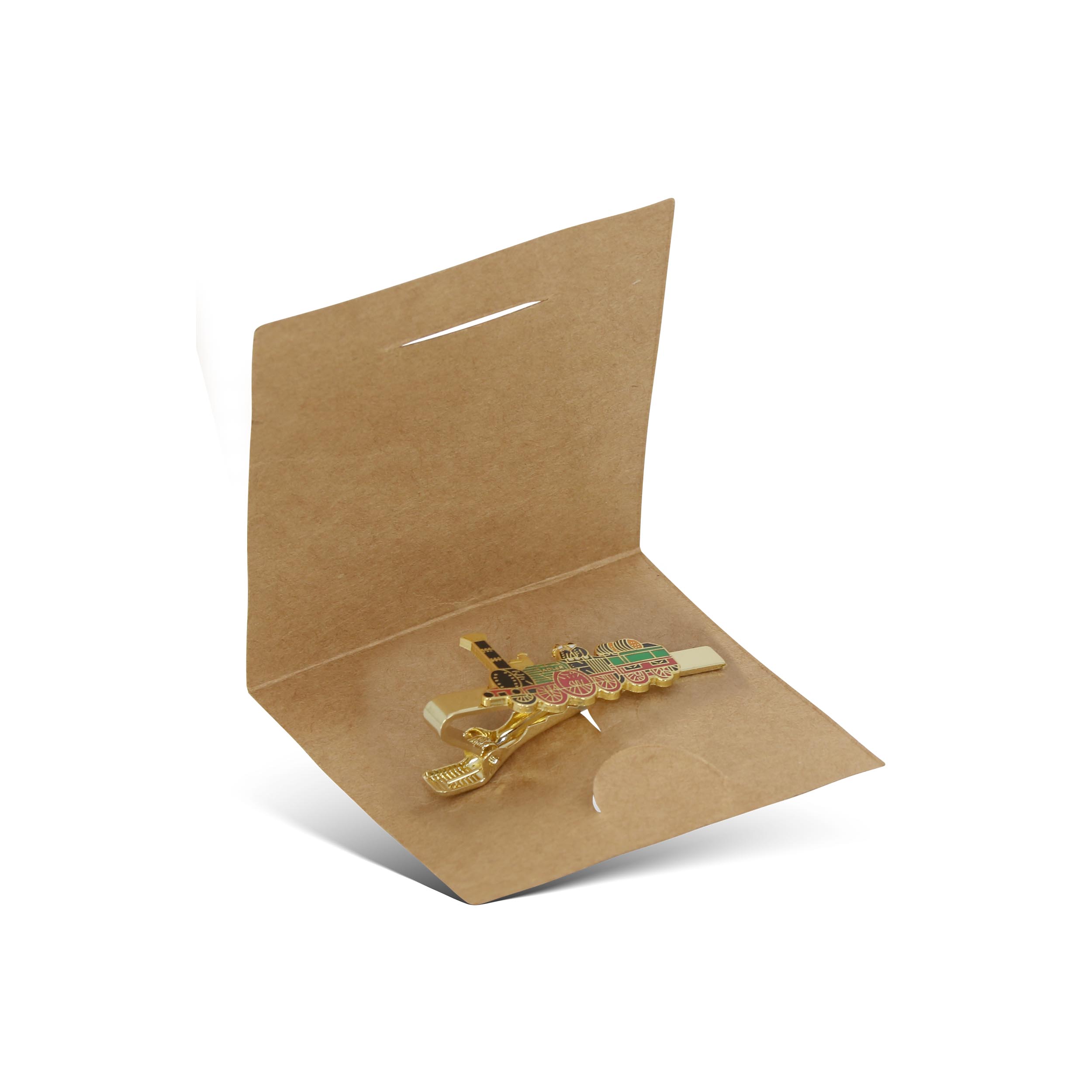 Die Krawattenklammer in ansprechender Verpackung ist ein zeitloses Accessoire, das Eleganz und Stil perfekt vereint. Gefertigt aus hochwertigem Material, sorgt diese Klammer nicht nur für einen sicheren Halt Ihrer Krawatte, sondern setzt mit dem geprägten Motiv der historischen Dampflokomotive ``Adler`` einen dezenten Hingucker. Das schlichte Design macht sie vielseitig kombinierbar und zu einem geschmackvollen Begleiter für formelle Anlässe oder den täglichen Business-Look.
