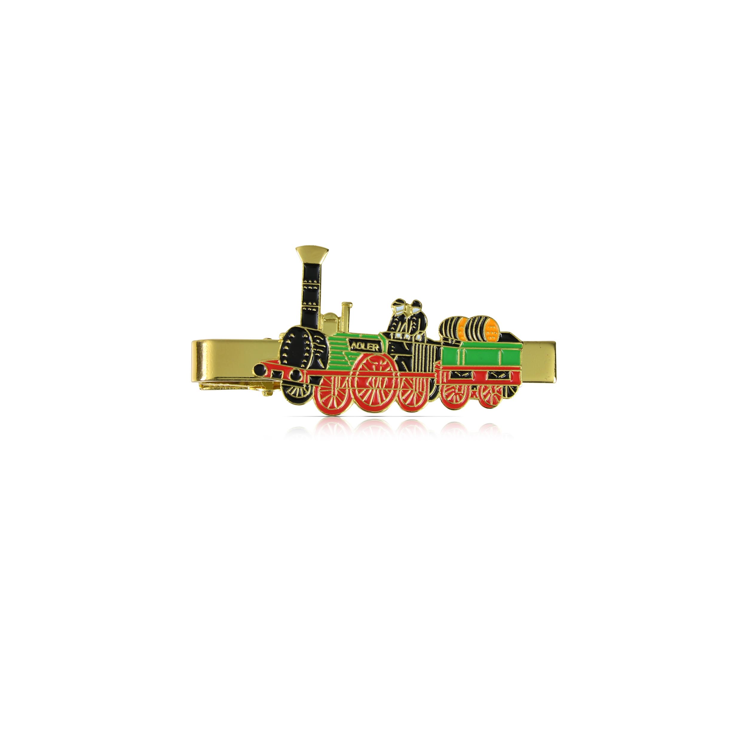 Die Krawattenklammer in ansprechender Verpackung ist ein zeitloses Accessoire, das Eleganz und Stil perfekt vereint. Gefertigt aus hochwertigem Material, sorgt diese Klammer nicht nur für einen sicheren Halt Ihrer Krawatte, sondern setzt mit dem geprägten Motiv der historischen Dampflokomotive ``Adler`` einen dezenten Hingucker. Das schlichte Design macht sie vielseitig kombinierbar und zu einem geschmackvollen Begleiter für formelle Anlässe oder den täglichen Business-Look.