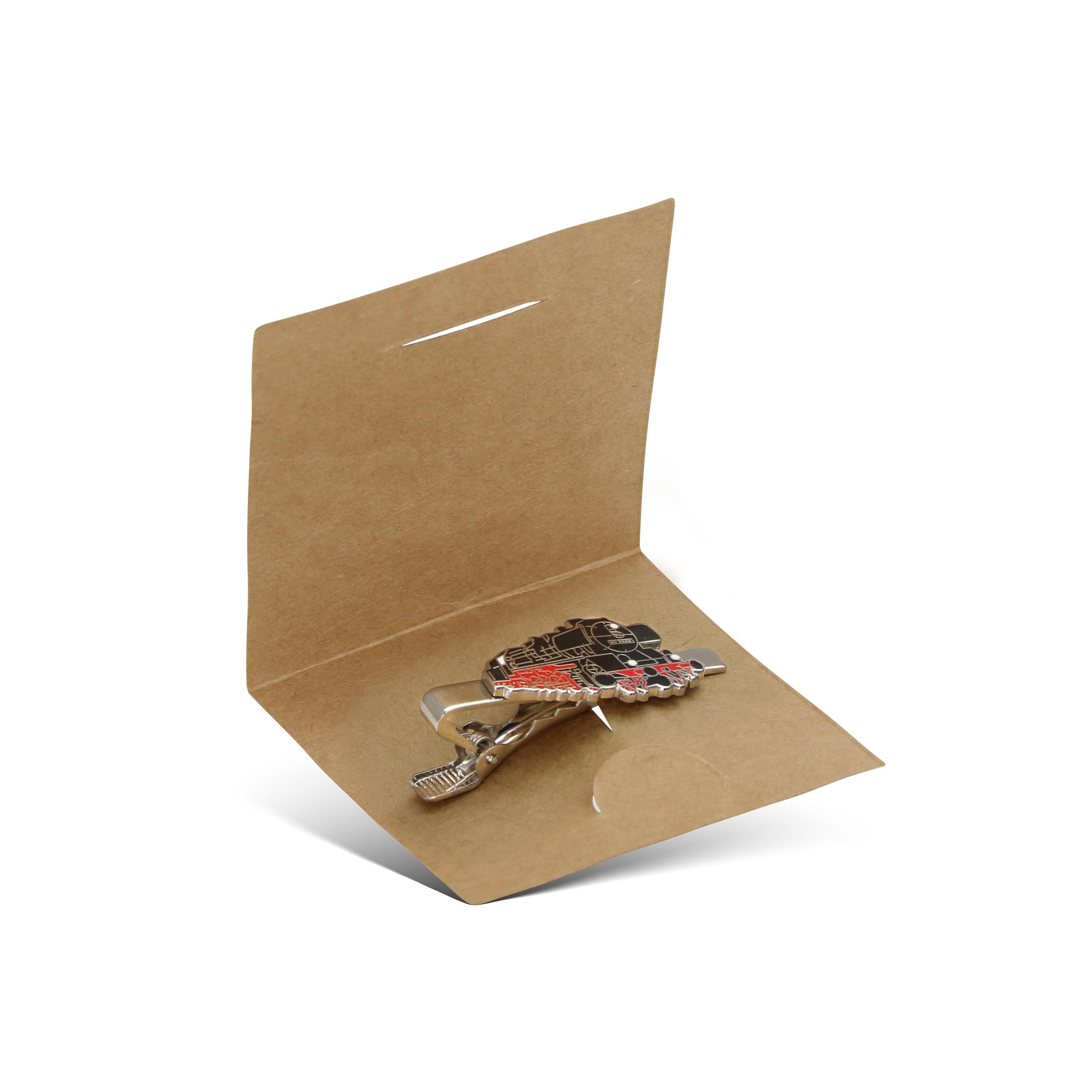 Die Krawattenklammer in ansprechender Verpackung ist ein zeitloses Accessoire, das Eleganz und Stil perfekt vereint. Gefertigt aus hochwertigem Material, sorgt diese Klammer nicht nur für einen sicheren Halt Ihrer Krawatte, sondern setzt mit dem geprägten Motiv der historischen Dampflokomotive ``BR50`` einen dezenten Hingucker. Das schlichte Design macht sie vielseitig kombinierbar und zu einem geschmackvollen Begleiter für formelle Anlässe oder den täglichen Business-Look.