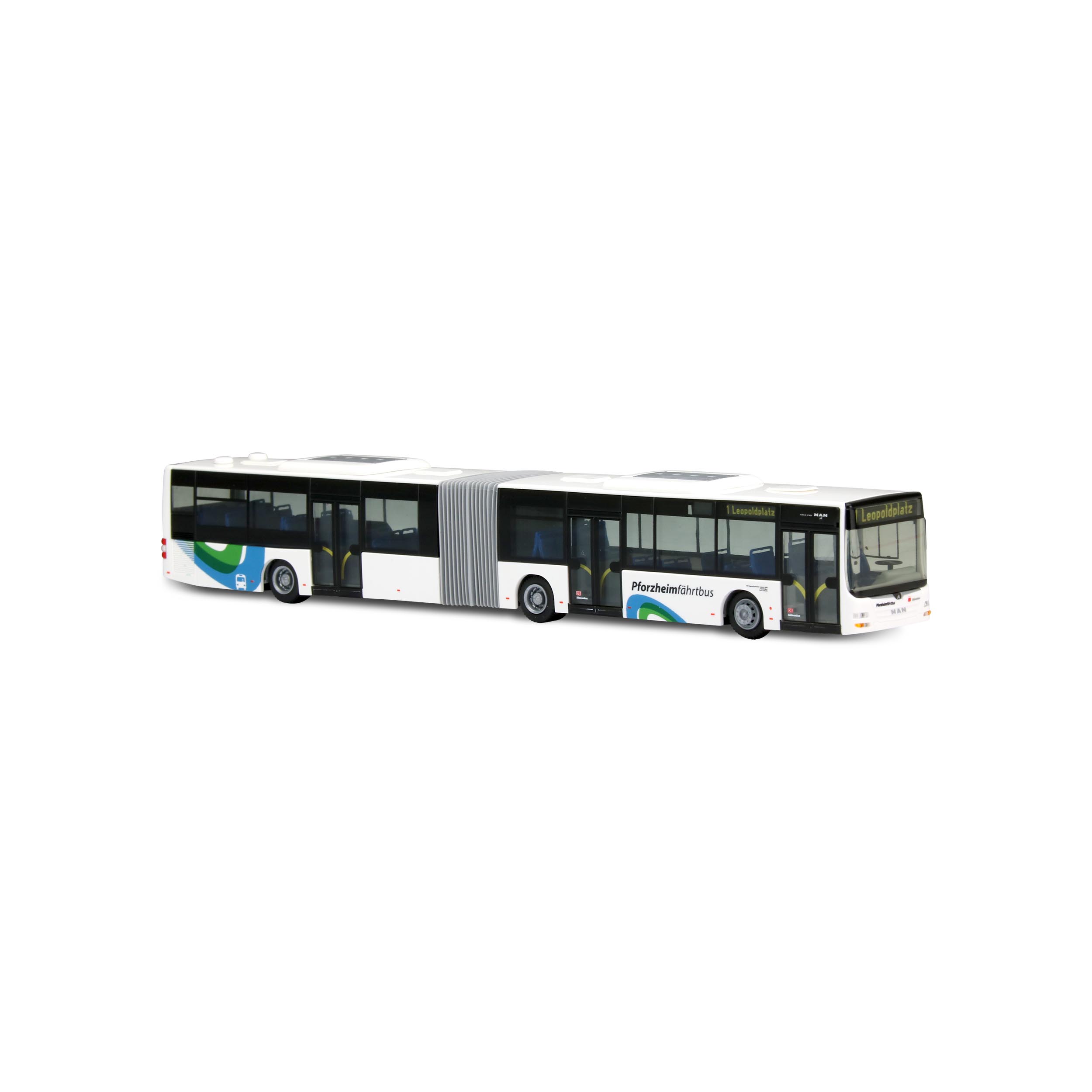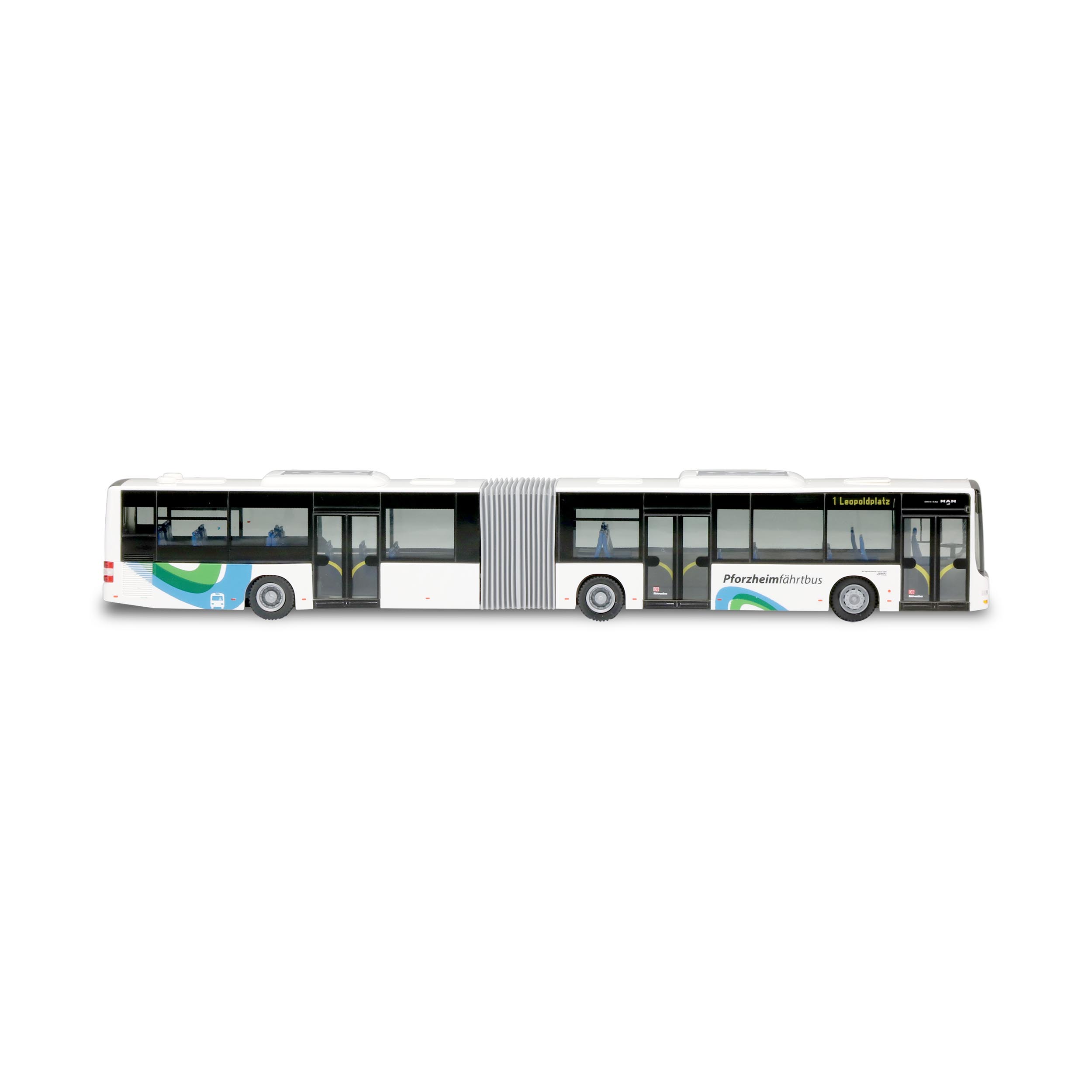 Exklusives Sondermodell eines MAN Lion’s City GL - der DB Südwestbus des Stadtverkehrs Pforzheim („Pforzheimfährtbus“).