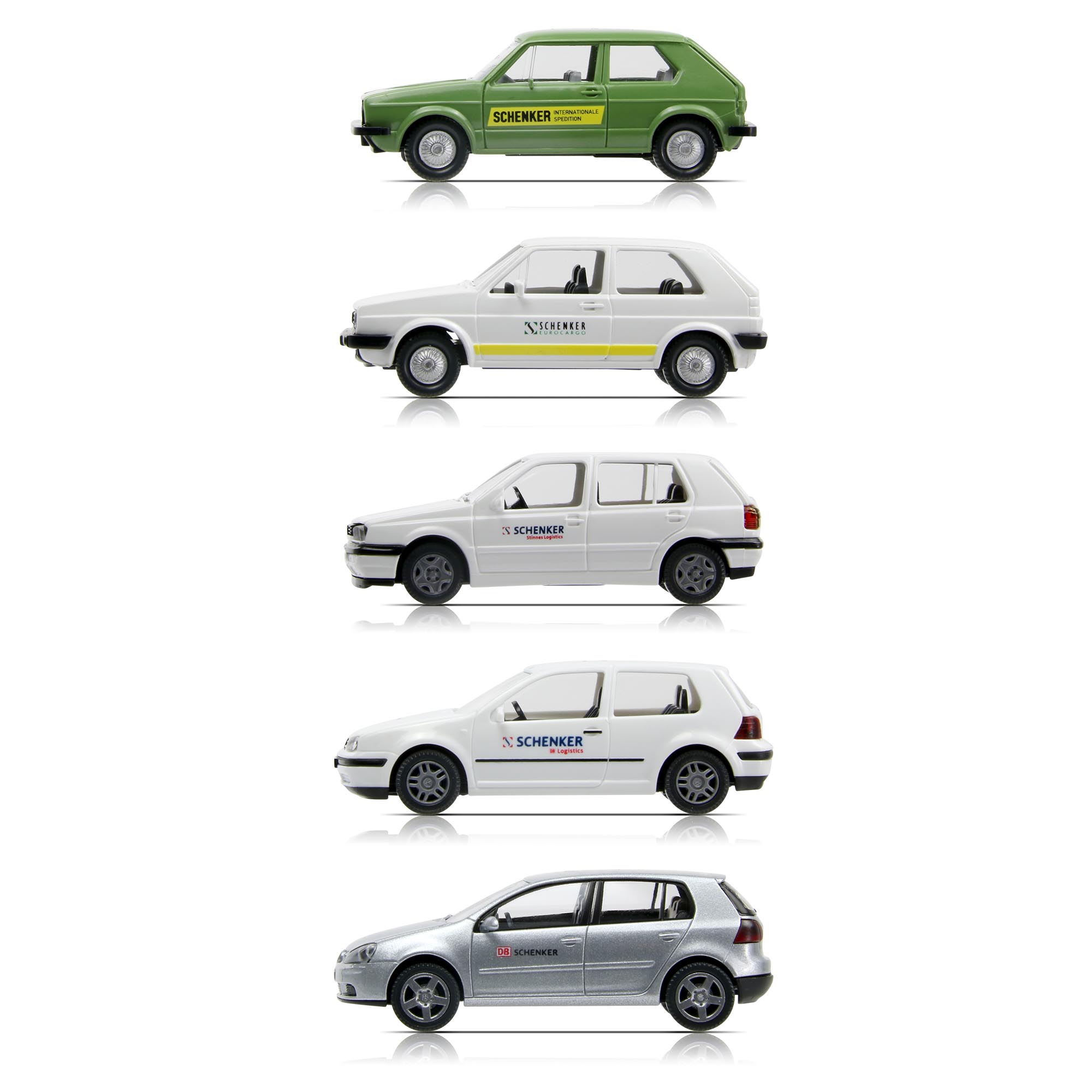 Fünf Generationen Golf im zeitgenössischen DB Schenker-Design. Maße: Karton: (L/H/B)... mehr